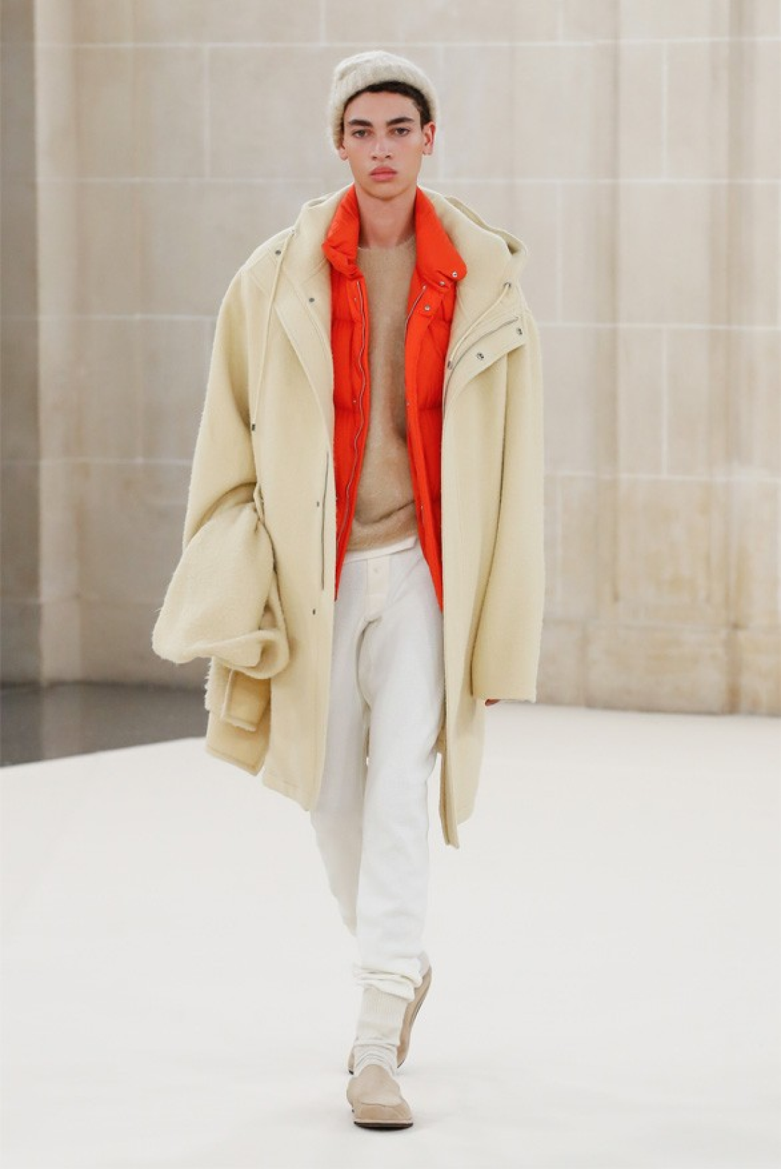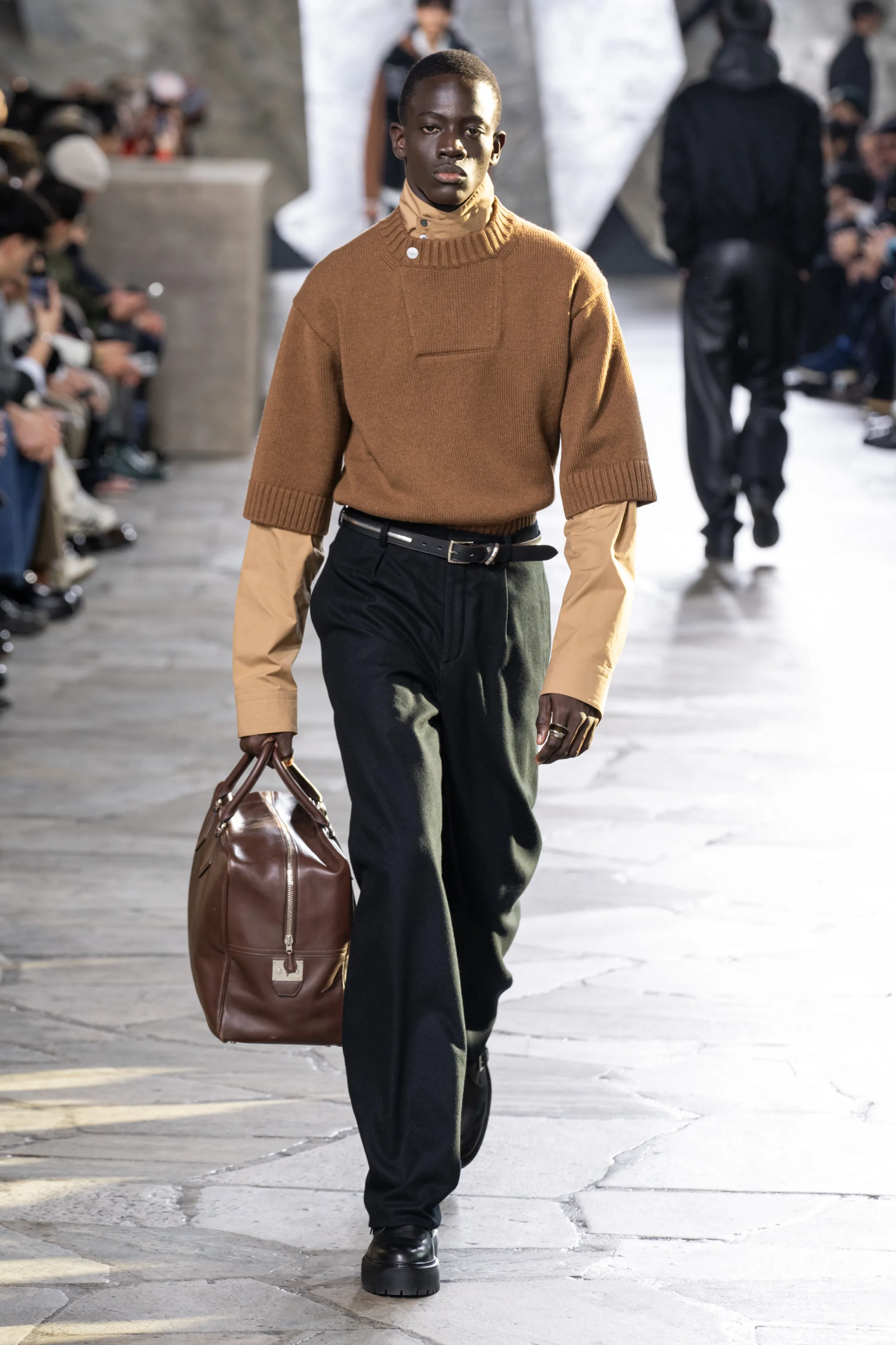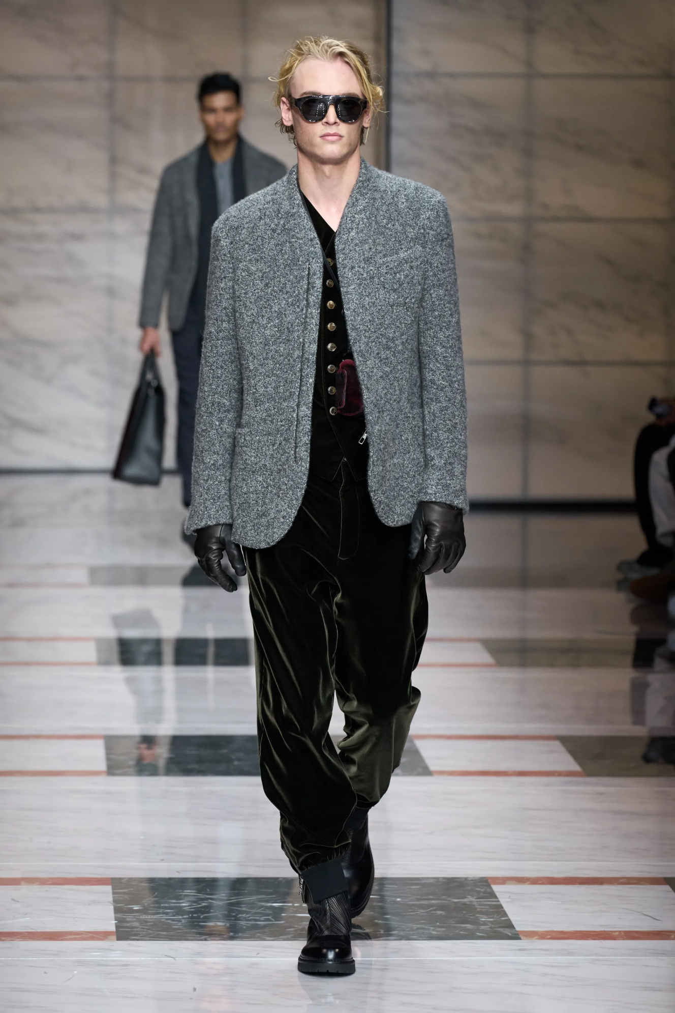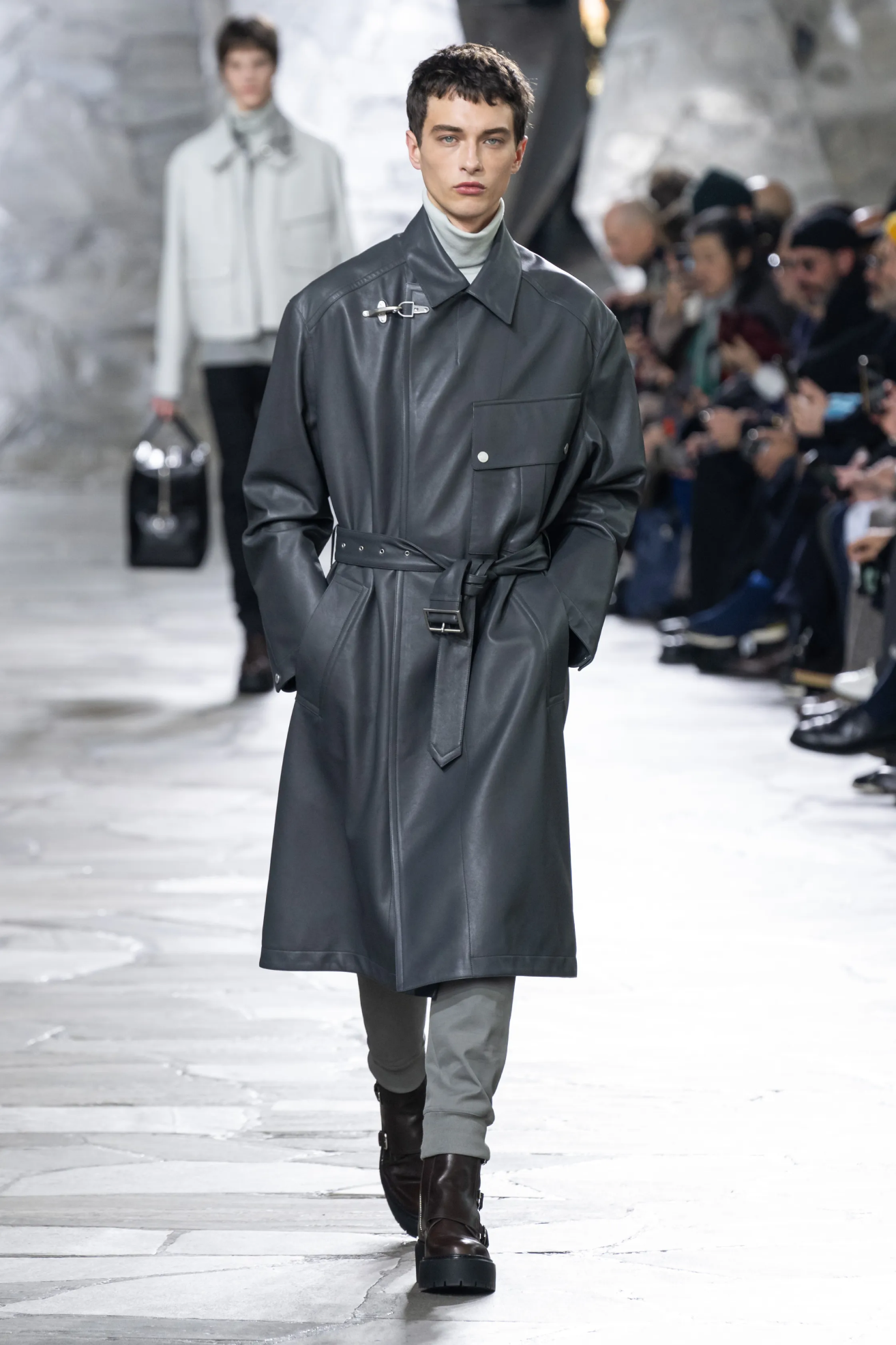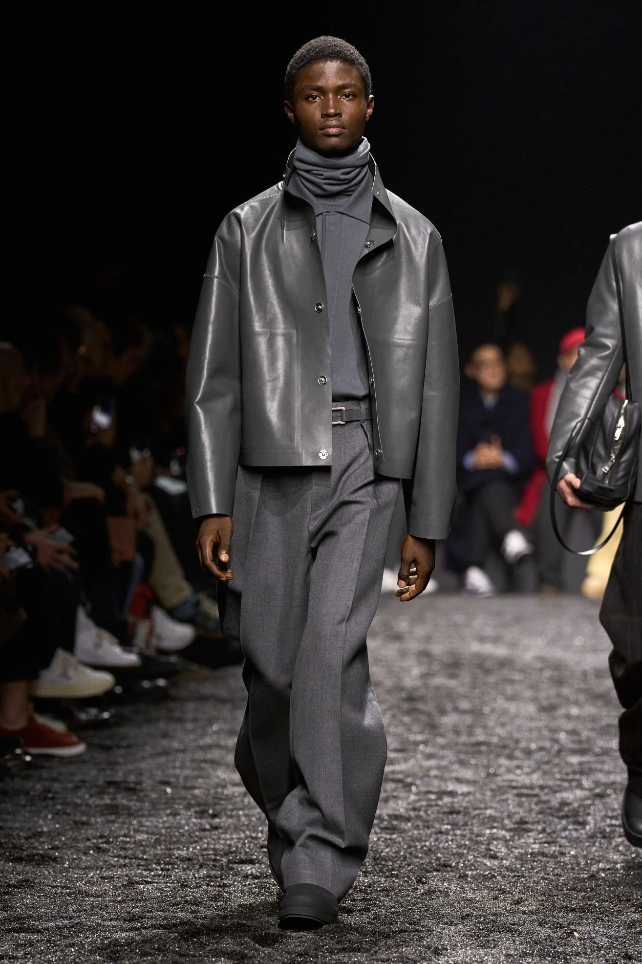 Две важные для мужской моды коллекции были почти целиком в сером цвете — это Giorgio Armani и Dior Кима Джонса. Еще красивые оттенки серой кожи — как асфальт после дождя — были у Hermes и Zegna.