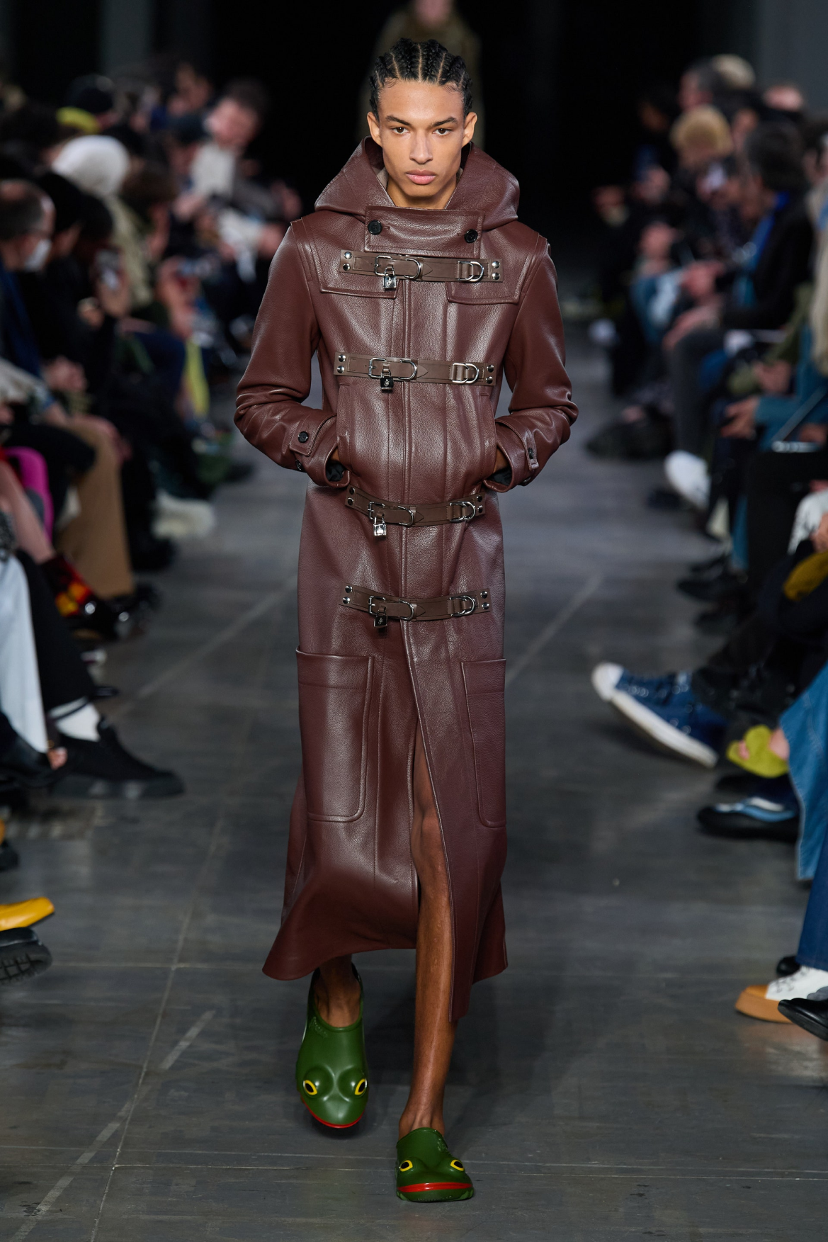 Кожаное пальто JW Anderson застегивается на четыре ремня, брюки Dries van Noten на высокой талии просят сразу три тонких ремешка. Пиджак Yohji Yamamoto потребует недюжинной сноровки, чтобы застегнуть все ремешки, — впрочем, в расстегнутом виде они смотрятся даже круче.