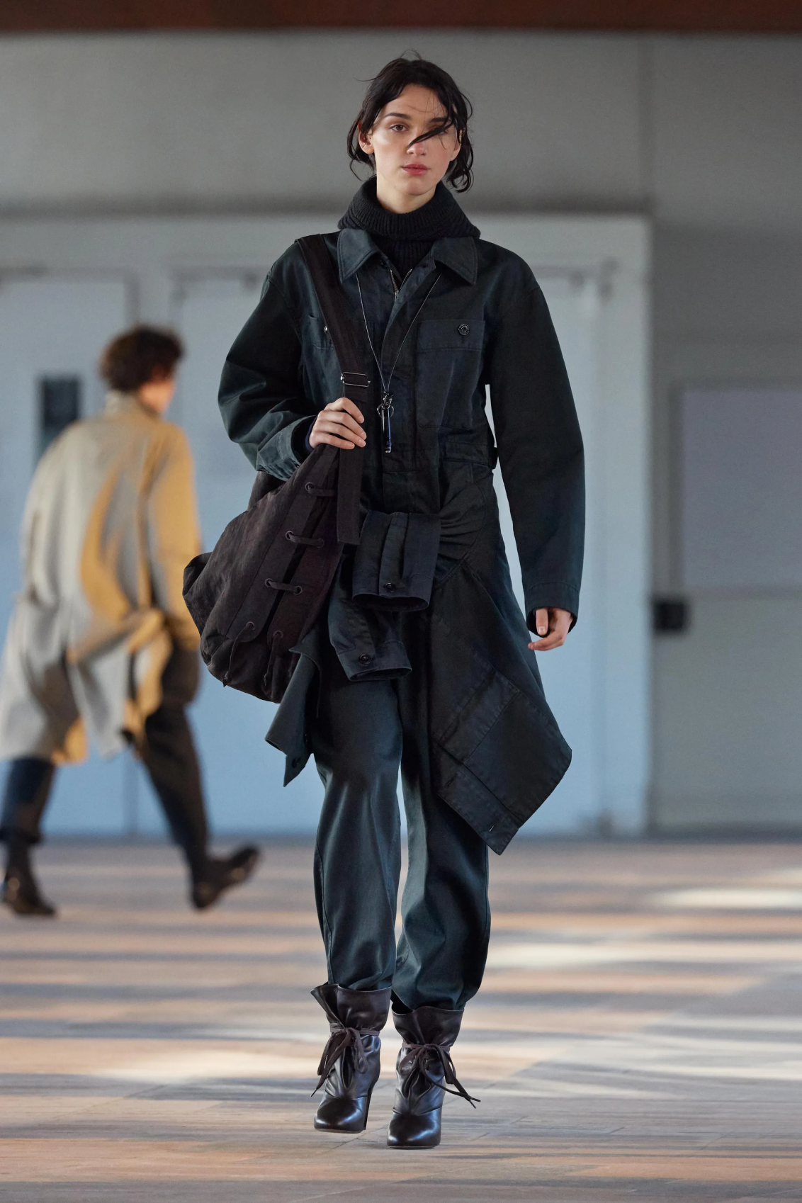 Микротренд Недель мужской моды: просто завяжите на талии что подвернется под руку. Например, ветровку, которая будет покачиваться в движении, рубашку в тон, пиджак или пуховик.