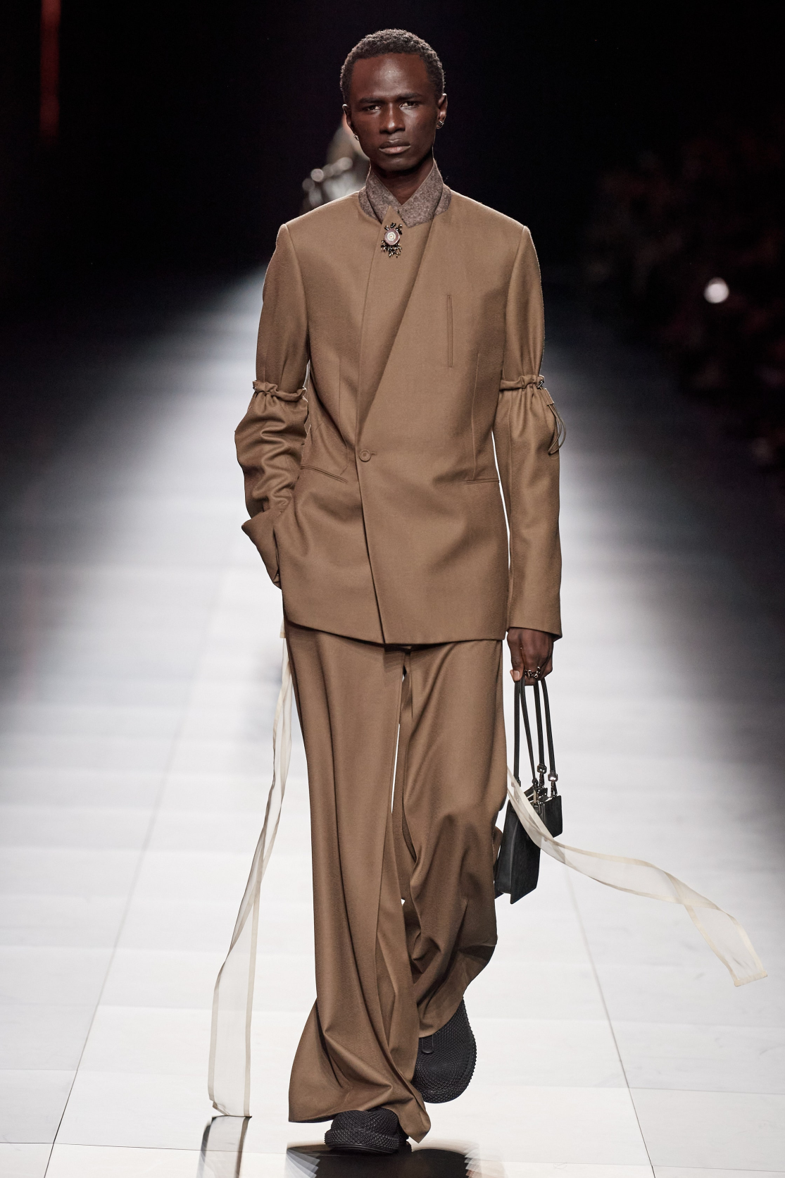 …и застегните их с помощью броши. Одна деталь — и мужской костюм сразу оказывается пронизан романтизмом и эстетством.
