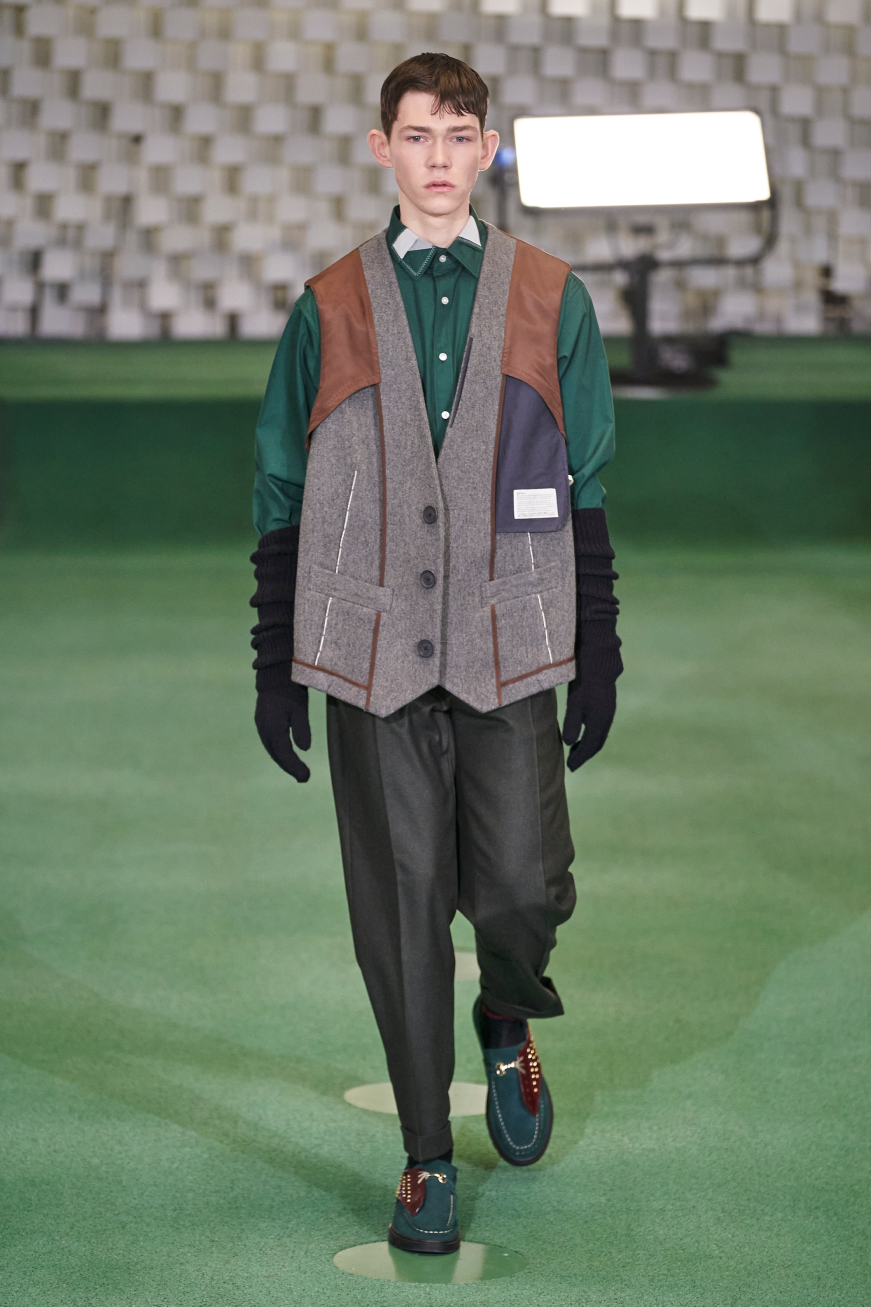 Перчатки могут быть контрастными или в тон — удачно смотрится в обоих случаях. Новую коллекцию Kolor легко перепутать с Sacai, и этому есть объяснение: креативный директор Kolor Юничи Абе — муж Читосе Абе, дизайнера Sacai.
